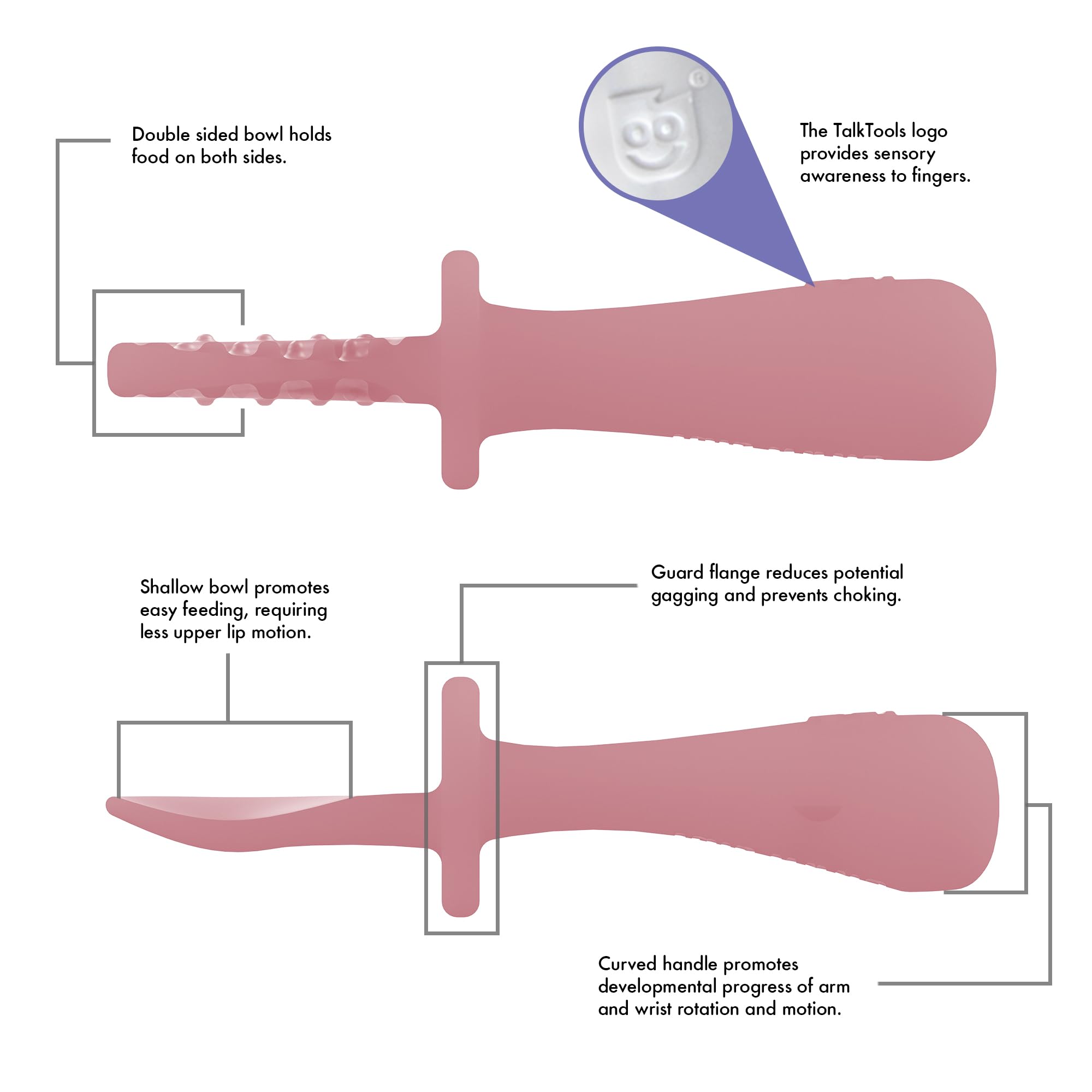 TalkTools ITSY Tiny Silicone Spoons – Twin Pack Soft Silicone Self-Feeding Training Spoons for Kids & Toddlers, Anti-Choking Flange Guard and Non-Slip Handle (Bubblegum)