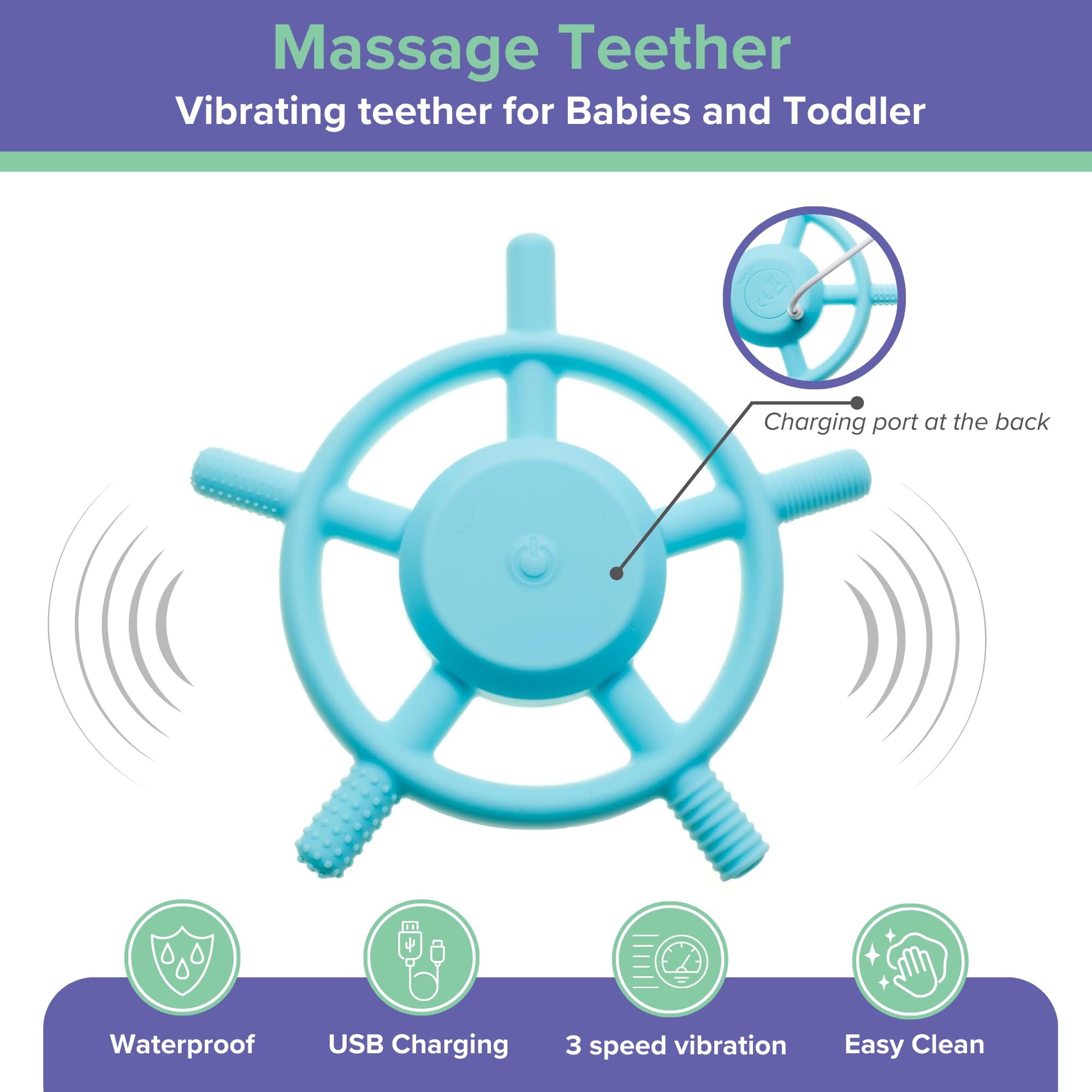 - Provides gentle pulsing sensory feedback to help calm gums, reduce fussiness, and offer soothing teething relief during the teething phase.